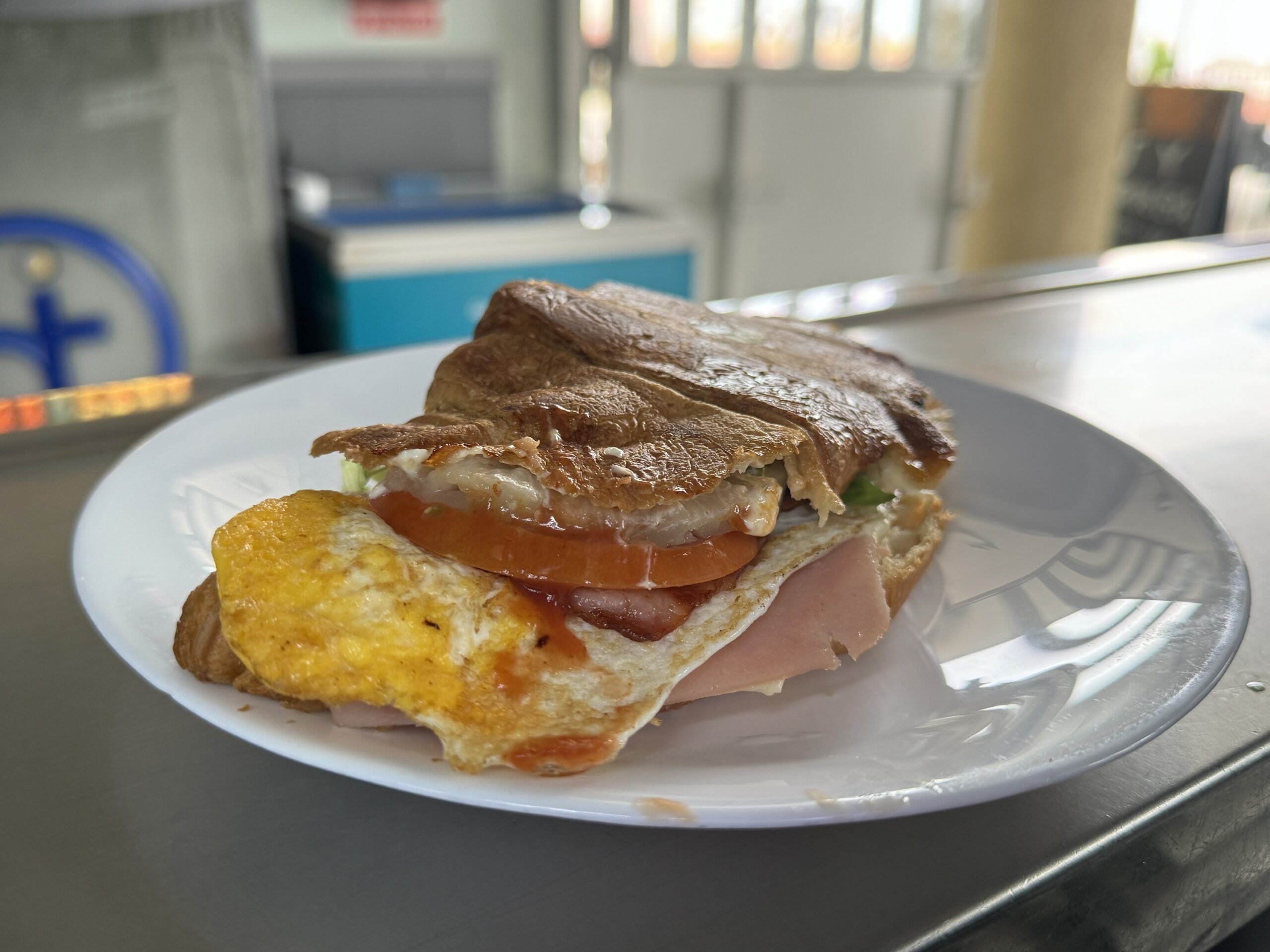 jamón, queso ensalada, piña, bacon, alioli y ketchup