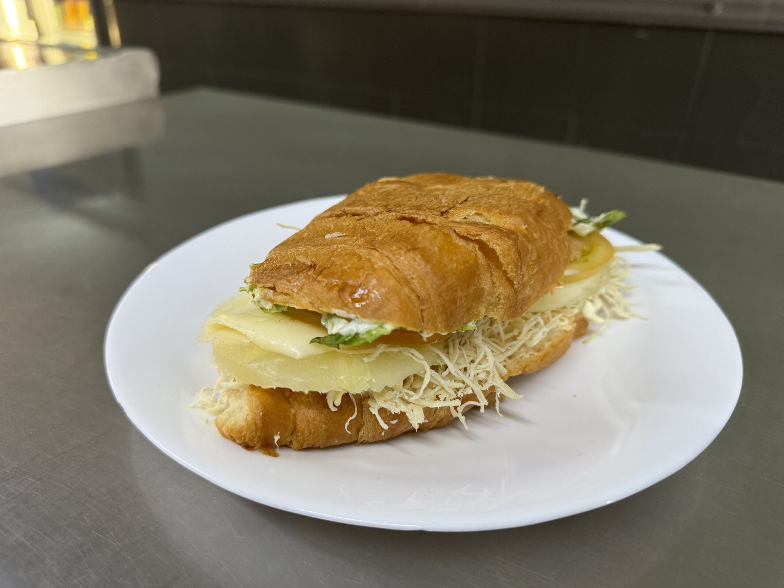 tomate, lechuga, alioli, piña, queso y huevo duro
